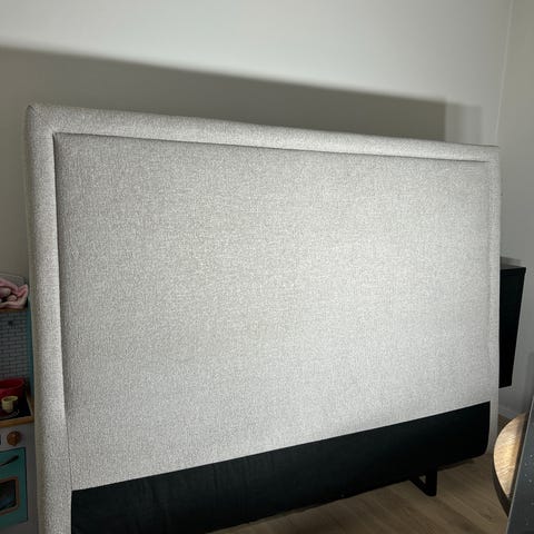 Sengegavlel i mørkt treverk