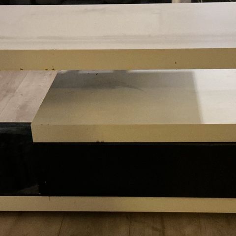 Pen, stilren TV-benk med 4 skuffer og 2 hyller. Svart, blank utførelse.