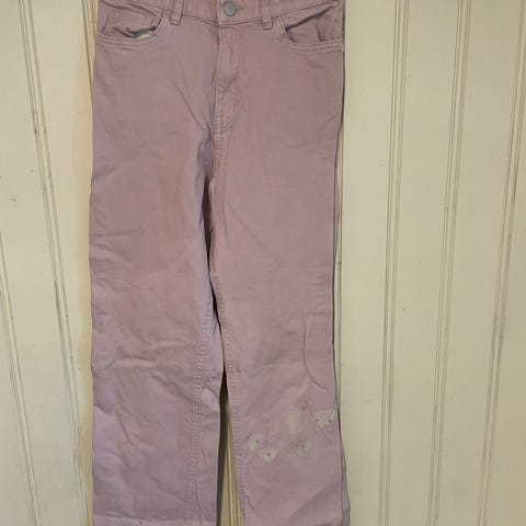 Et lite hull ved høyre baklomme (se bildet) er grunnen til at denne buksa gis bort.