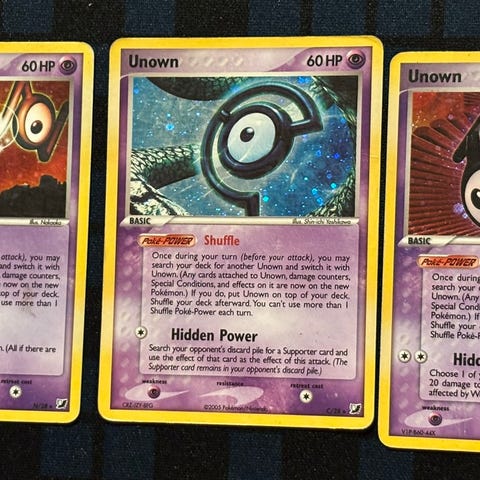 Vintage Pokemon kort fra Unseen Forces serien, år 2005