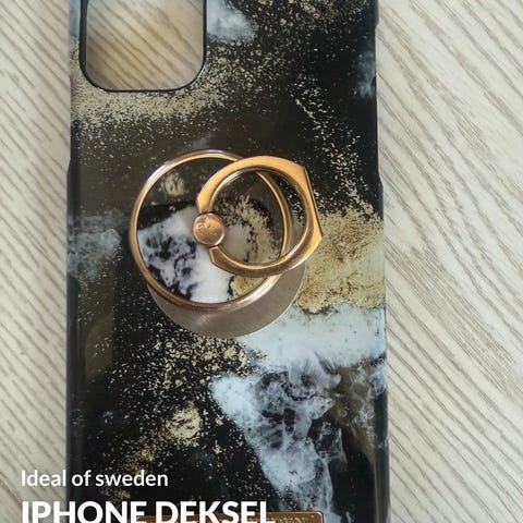 IDEAL OF SWEDEN telefondeksler i ulike design og farger. Dekslene inkluderer mønstre som leopardprint, svart med gulltekst, og svart med glitrende steiner. Materialer varierer mellom plast og silikon. Passer til ulike telefonmodeller med firkantet kamerautskjæring.