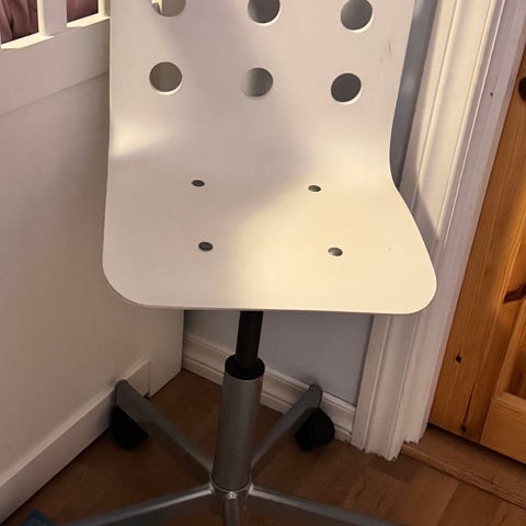 IKEA barnestoler i hvitt, laget i tre. To stoler med enkel design, egnet for barn. Brukt av våre to barn. Noen merker og sår, godt brukte etter nesten 10 år. Men masse bruk igjen med litt TLC.
