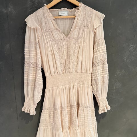 Tettsittende nettingkjole i sort med lange ermer, mulighet for å trekke den opp for å gi den et kortere utseende. Kjolen har ruching detaljer på sidene.