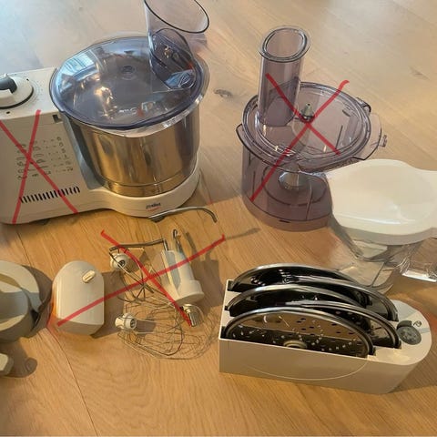 Braun (foodprocessor ) kjøkkenmaskin med flere skjære- og rivetilbehør.