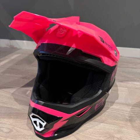 Selger en hel og pen crosshjelm for barn. Str YL 51-52. Kjøpt ny på Gms Gjøvik. Kostet ca 2000kr ny.