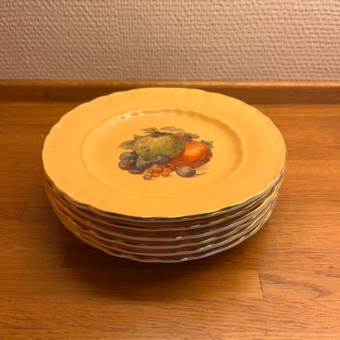 Egersund Fayancefabrik – 6 grønne asjetter m/gull (18 cm)