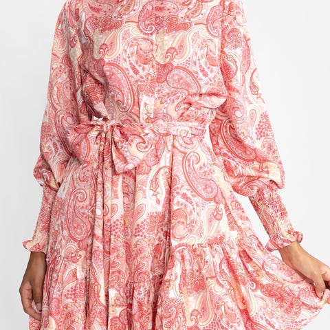 Keana Dress W Belt Linen fra Hale Bob. En fin skjortekjole fra Hale Bob med et delikat og fint paisley-print i nyanser av gront, orange, rosa og blätt pà en cream bunnfarge. Keana Dress W Belt Linen har knappestolpe i front med perlemorsknapper hele veien ned, og krage i halsen. Kjolen har lange ermer med elastisk mansjett, og et fint blondepanel. Pà brystet har kjolen det samme blondepanelet, og fine foldedetaljer. Det avtakbare knytebeltet i livet definerer midjen fint, og skjortet har et flott fall.