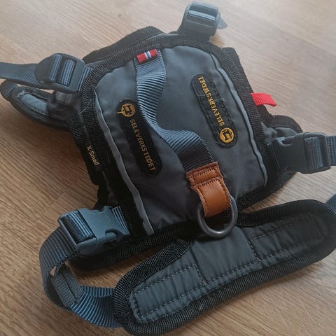 Passer mellomstor hund. Brukt på en på 17 kg, ca 40 cm i nakkeomkrets og 50 i rygglengde