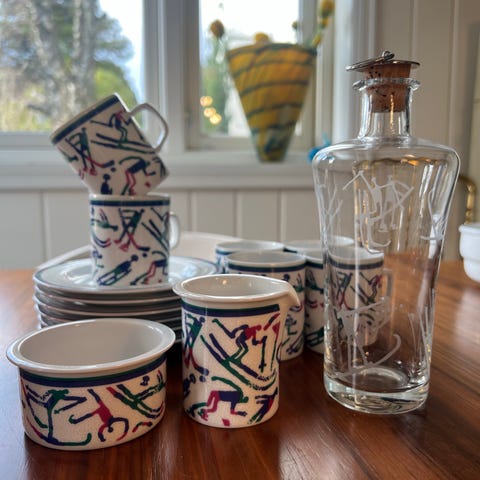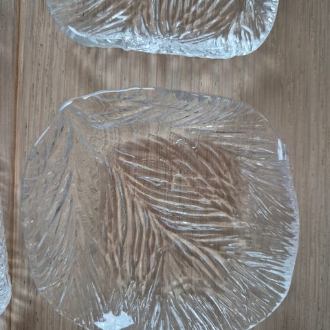 Hadeland Glassverk Furu bollesett og serveringsfat i glass.