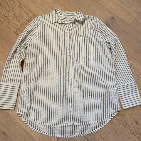 En ny tidløs favoritt til garderoben - i luftig, crepet bomull med lysegule og hvite striper! Bibi Crepe Shirt er en klassisk skjorte med ekstra høy mansjett, noe lavere skuldersøm, lomme på brystet og buet fald med en lett oversized passform. Dette er en sikker vinner til alle anledninger. Match den sammen med et par lyse jeans, linbukser eller en denimshorts.