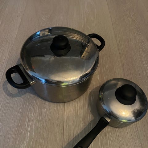 Selger gryte og kasserolle i teflon kjøpt på Europris for noen år siden. Gryten rommer ca 2 liter, og kasserollen ca 1,5 liter. Må hentes.