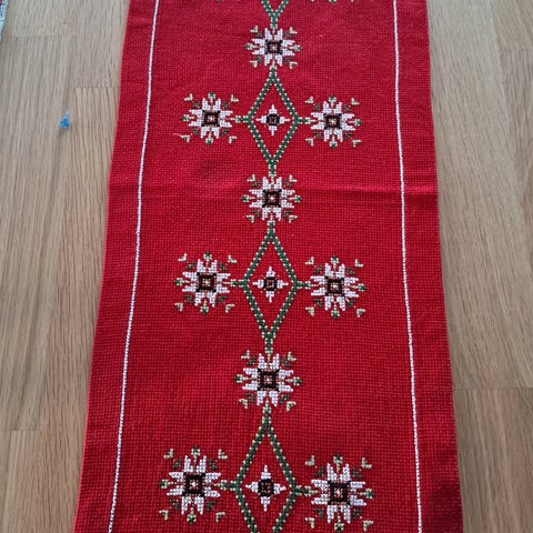 Broderingssett med motiv av julenisse og snømann. Inneholder mønsterark og brodergarn i flere farger. Passer til juledekorasjon og håndarbeid.