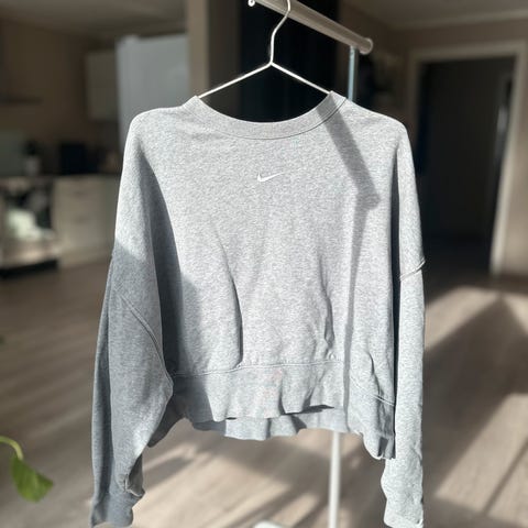 Kul litt neon grønn oversized Nike genser. Stor i størrelsen, størrelse L. Fargen kjem ikkje heilt fram på bilde dessverre. Litt bruksmerke/misfarget ved halsen.