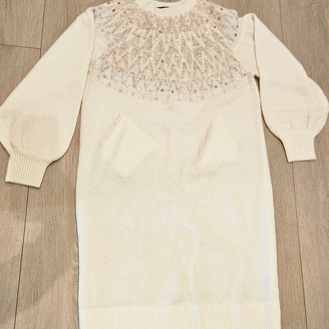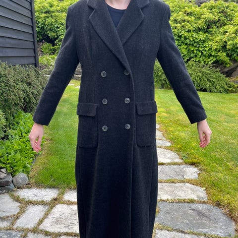 Hvit ullkåpe selges. Kragen i fuskepels har glidelås og kan tas av. Kåpen kan sendes.