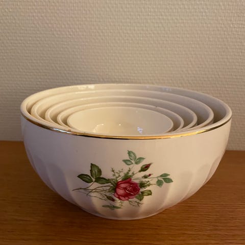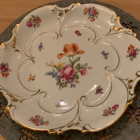 Vintage porselensskål, som er ideell for høytidene. Kan brukes til salater, kjeks, frukt, nøtter og andre retter. Laget av en av de eldste tyske porselensprodusentene Ilmenau, grønt merke med Made in Den tyske demokratiske republikk, datert mellom 1973-77. I perfekt stand. Diameter 19 cm, H=9 cm. Prisen er kun for skålen. Ingen lys tilgjengelig.