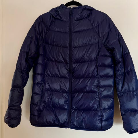 Nydelig lang armygrønn dunkåpe i blanding av 50% dun og 50% fjær. Jakken er superlett og behagelig på samtidig som den er varm. Den har to hakk i knappestolpen til den voksende magen, eller baby i bæresele etter fødsel. Den har noen bruksmerker, men disse er mer synlige på bilder en i realiteten. Har ikke forsøkt å vaske vekk flekkene som fremkommer på bildene. Selges derfor billig. Nypris var 1500kr. Den er kjøpt ny av meg.