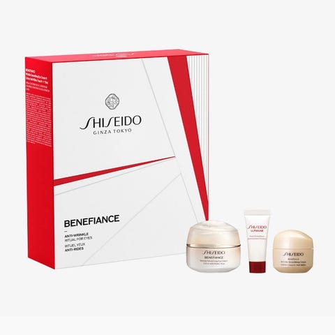 Shiseido Benefiance Anti-Wrinkle Ritual Eye Cream er en øyekrem som motvirker rynker og gir en ungdommelig og strålende hud rundt øynene. Produktet er utviklet for å styrke og revitalisere huden, og inneholder ingredienser som bidrar til å glatte og beskytte det delikate øyeområdet. Gavesett med 15 ml øyekrem, 15 ml ansiktskrem og 5 ml serum.