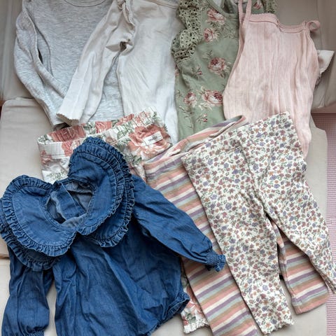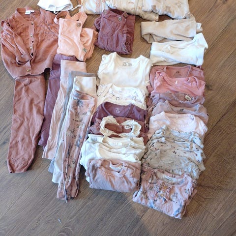 Selger klespakke i bomull og noe bambusviscose fra ulike merker- nameit, Lindex, reflex og Lilleba. Består av: