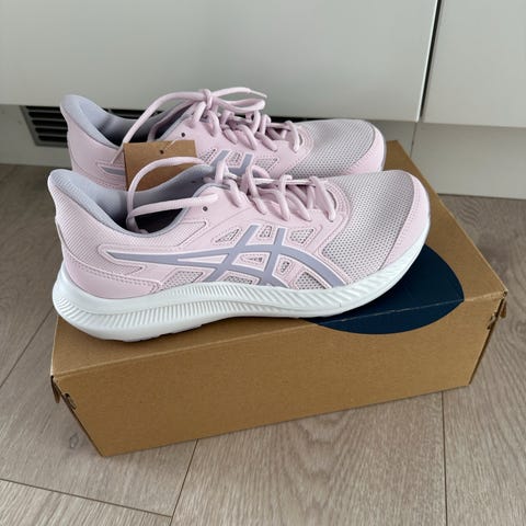 Hoka Sneakers joggesko i størrelse 38, beige farge. Skoen har et pustende mesh-materiale og EVA-skum i mellomsålen for komfort. Yttersålen er laget med slitesterk Durabrasion-gummi. Designet for daglig bruk og løping, med fokus på lettvekt og støtte.