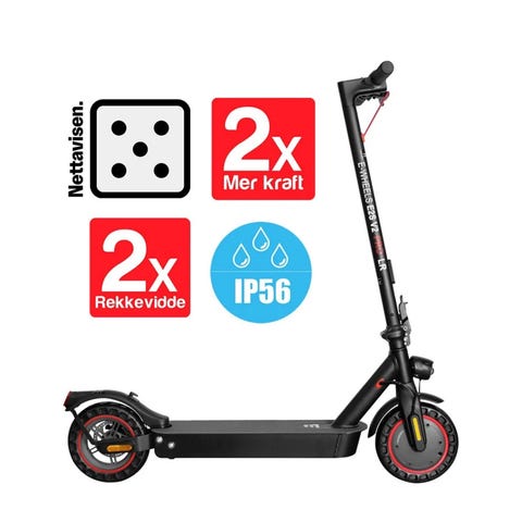 Dette er Pro-versjonen av vår mest solgte elsparkesykkel. Her kombineres kraft og funksjonalitet med en robust 1000-watts motor (maks), en optimal rekkevidde på 50 km, IP56-sertifisering og en brukervennlig Bluetooth-app. Enten du trenger et pålitelig transportmiddel eller en morsom sparkesykkel for fritiden, er E2S V2 Pro Long Range det perfekte valget.