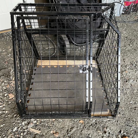 Nesten ubrukt hundebur, passer for mindre til mellomstor hund. En trygg plass for hunden. Kan enkelt legges sammen for lagring eller transport.