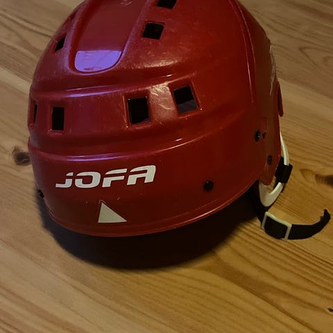 Selger pent brukt Jofa ishockeyhjelm som kun har vært brukt til småturer på isen gjennom flere vintre. Den har vært pent brukt og aldri mistet i bakken. Antatt alder er ca 10 år men de siste årene har den lagt lagret tørt i garasjen uten å være i bruk.