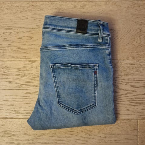 Selger denne jeanen fordi den ikke passer meg lenger. Den er i veldig god stand uten bruksmerker eller skader. Den ble kjøpt i august for ca 2000kr og selger den her for kun 500kr. Buksen er lenge 32 som kan passe 170-180cm høy. Gjerne send melding om du er interessert eller lurer på noe