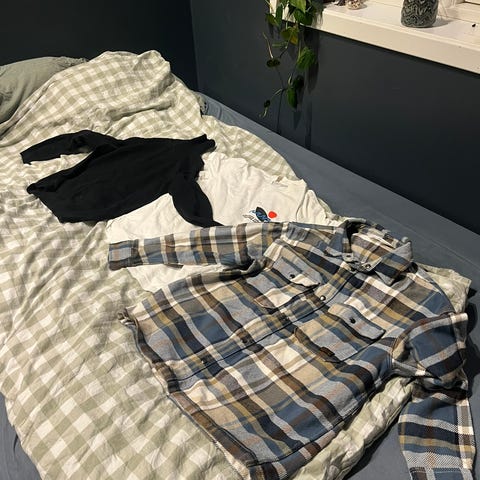 Pent brukt men t skjorta har mer bruksmerker enn genseren