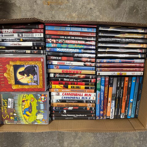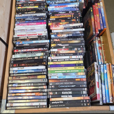 2 esker fulle av musikk-DVD'er selges KUN samlet til hbo kr 1500. Kvaliteten skal stort sett være bra, men jeg garanterer ikke for at det ikke er et hakk eller tre i noen av dem. Tror dette må dreie seg om ca 130 titler, og sikkert bortimot 200 plater da noen er doble og triple.