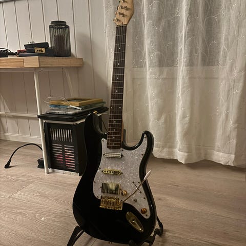Selger et plekterbrett som er tatt av en Fender Stratocaster American Standard fra 2003. Plekterbrettet har HSS-konfigurasjon (Humbucker, singlecoil, singlecoil). Passer gitarer med 11-hulls montering.