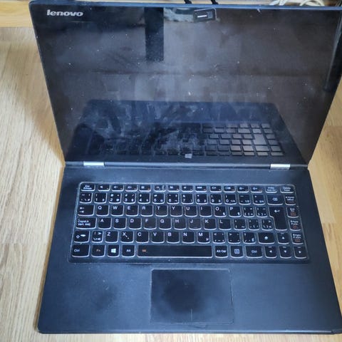 Den bærbare datamaskinen har berøringsskjerm, slik at du kan bruke den med fingeren. Den kjører Windows 10 og har 16 GB RAM, hvis jeg ikke tar feil. Den viser tegn på slitasje etter bruk.