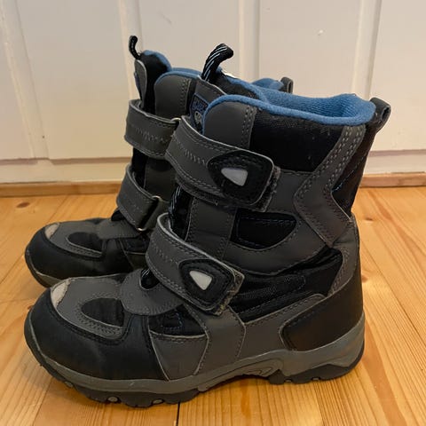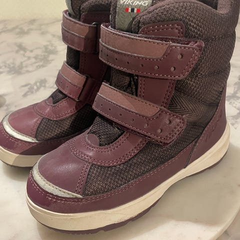Viking barnesko for jenter i størrelse 36. Skoene er designet for barn og har en slitesterk såle med godt grep. Fargen er en kombinasjon av grå og blå toner. Skoene har borrelås- og snøresystem for justerbar passform og støtte.