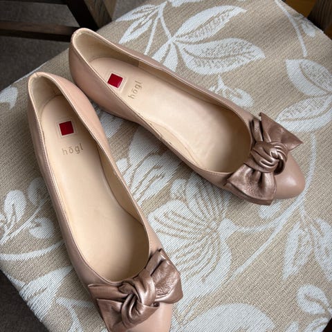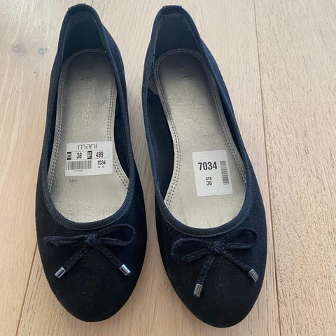 Högl ballerina sko i størrelse 38, svart farge. Laget i skinnmateriale. Skoene har en klassisk design og er beregnet for damebruk.