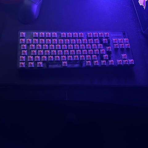 Original eske med alt ordinært tilbehør. Samt installert corepad softgrips sidegrips på den. Lett å ta av om ikke ønsket på.