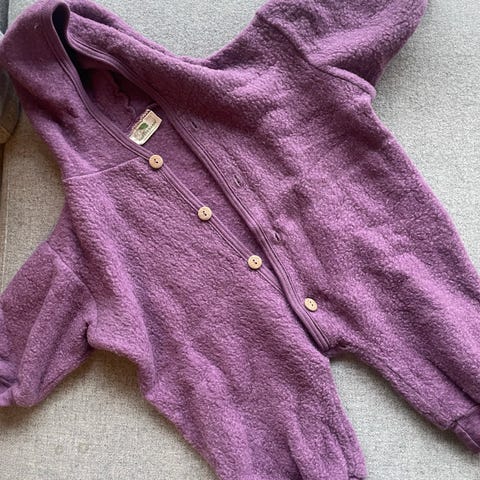 Pysj / drakt i ullfleece fra Nøstebarn. Godt brukt med slitasje/fargeendring i kragen. Selges derfor rimelig. Ellers hel og fin med mye god bruk igjen.