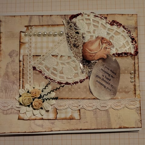 Håndlaget kort. Alle sider er dekorert med papir, klistremerker og diverse utklippet dekor. Distressed’ i kantene, for at det skal se gammelt ut. Lyst papir inni kortet, for å kunne skrive en hilsen.🖤🫶 Jeg lager kort til gave, til en venn som liker stilen eller kansje til deg selv? Alt er håndlaget av meg. Jeg bruker resirkulerte, og nye materialer.🤩