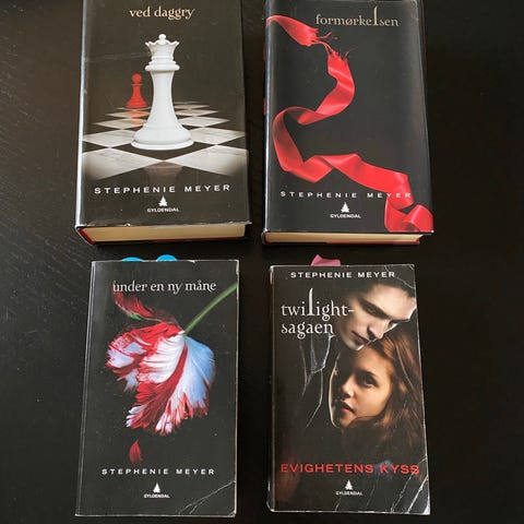 Twilight Saga bokpakke bestående av fire bøker: Twilight, New Moon, Eclipse og Breaking Dawn. Bøkene er på norsk og dekker hele serien.