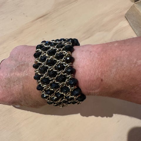 Elegant armbånd med perler og krystaller (18 cm) – Som nytt!