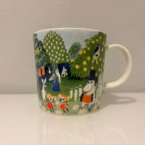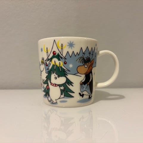Moomin Mummikopper metall påskeegg med motiv av Mummitrollet og venner. Eggene er laget av metall og har en blå bakgrunn med himmel og skyer. Egnet til oppbevaring eller dekorasjon i påsken. Helt ny bare stått til pynt selges for 160 kr