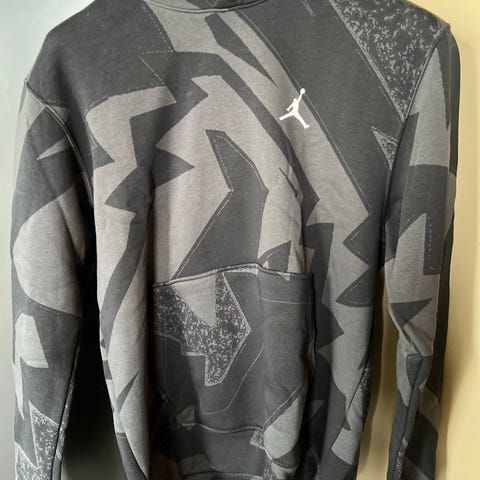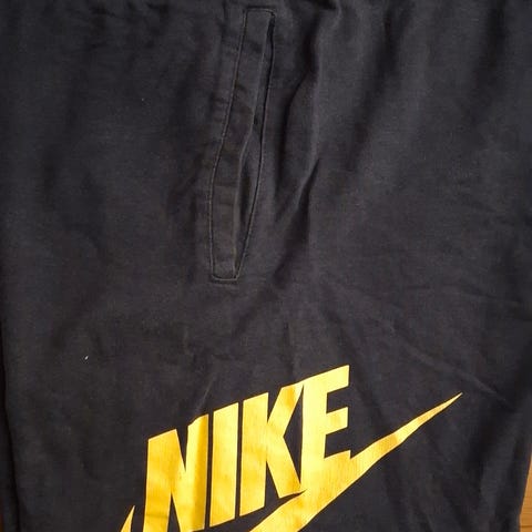 Nike Air Basketball klær for herre i størrelse L, blå farge. Sett består av genser med hette og bukse med elastisk midje og snøring. Materiale er mykt og egnet for basketballaktivitet og andre idretter også.