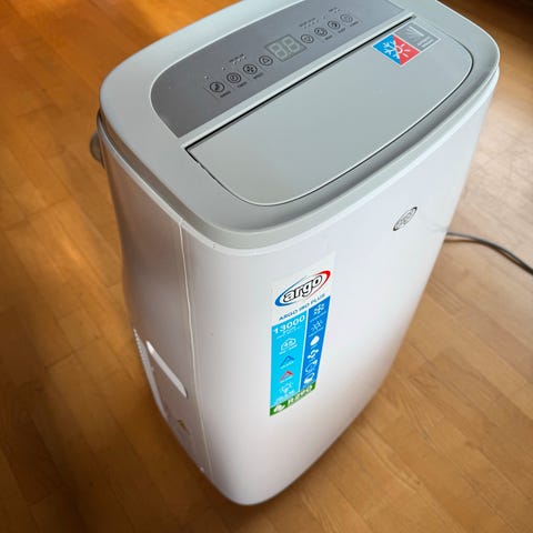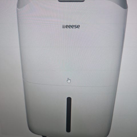 Eease Avfukter og luftfukter i hvit farge. Enheten har kontrollpanel på toppen med flere funksjonsknapper og et digitalt display. Designet for innendørs bruk for å regulere luftfuktighet. 2-i-1