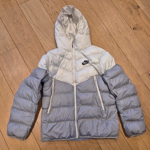 Nike Vinterjakke i størrelse L, farge svart, laget av bomull. Jakken er designet for utendørs bruk og gir varme og komfort i vinterforhold. Selges for 350 kr kan sendes mot att kjøper betaler frakt