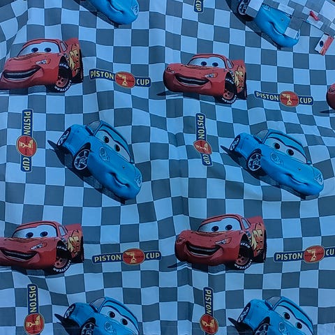 Disney Cars sengeteppe med motiv av racerbiler, hovedsakelig i rødt. Passer for barn og kan brukes som sengeteppe eller dekorasjon på barnerommet. Denne er brukt kun få ganger selges for 100 kr. Kan sendes mot att kjøper betaler porto