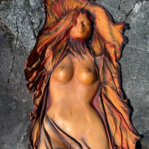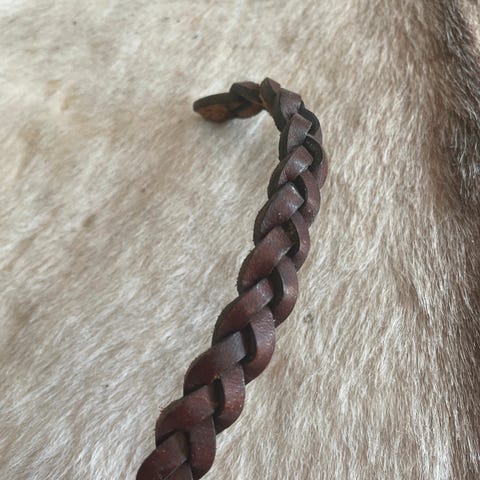 Hei. Jeg vet lite om denne kunsten selv, men ble fortalt av forrige eier at det ble kjøpt på 80 tallet. Det er vist laget i ekte skinn. Det har en 3D effekt og personlig liker jeg det veldig godt, men det passer ikke inn noen plass her jeg bor. Prisen er et estimat, så kom gjerne med bud. Bør nok hentes. Rammen er ganske hel og fin.
