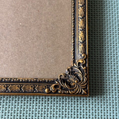 Vintage messingramme med vakker dekor / ornament i hjørnene.