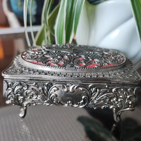 Vintage smykkeskrin i sølvplett.