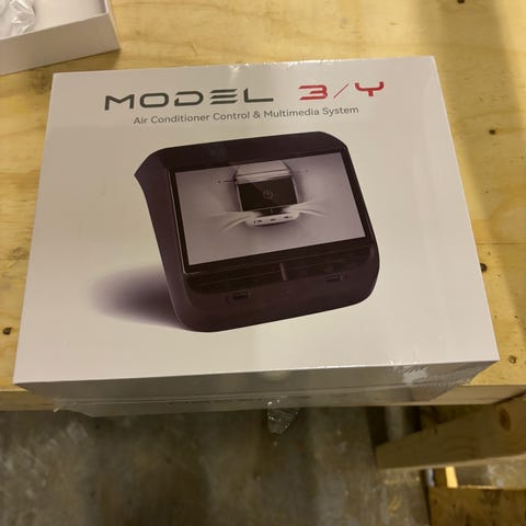 Teslasy T9 Pro dashboard display med digital skjerm for Tesla Model 3 og Model Y Highland og Juniper. Produktet leveres med tilbehør og brukermanual. Designet for å gi oversikt over bilens informasjon på en digital skjerm.