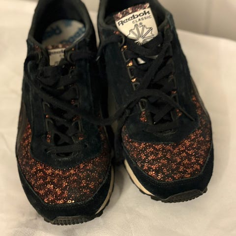 Merkelappen er tatt av, men skoen er kun prøvd inne.