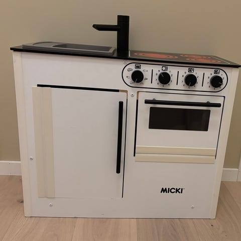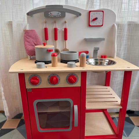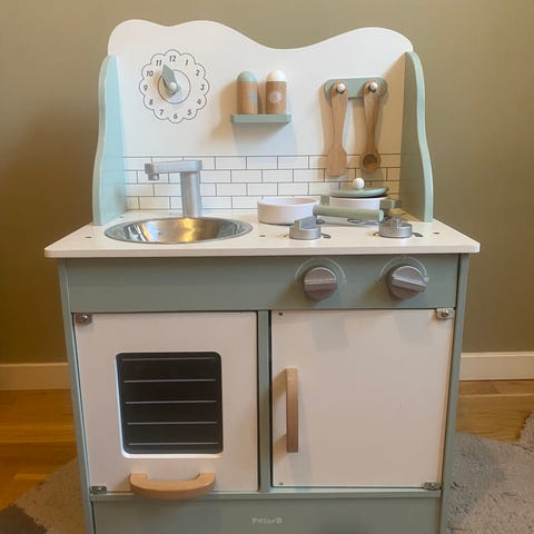 Lekekjøkken i rosa og gule striper