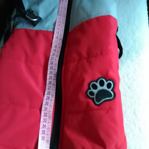 Ubrukt vinterdekken til hund med fint mønster og med for i. Størrelse 40 cm